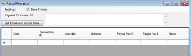 For owners of E-Commerce systems that run on paypal accounts, this is an incredibly useful tool. When a customer pays with paypal, you will receive a 'notification of payment received' email. In this email, it contains the buyer information. To keep accounts, this information would usually be manually entered into a Microsoft Excel spreadsheet. This software will automatically download the payment notification emails, and extract the data out of them, automatically. Then, it will display the results in a DataGridView, which you can copy and paste straight into your Excel worksheet. This saves HOURS of typing. It also allows you to save the invoice emails as html files, to keep as records. This software is available for sale for £99. Please email [email protected] if you wish to buy, and we will send more information. We also created a proof of concept paypal processor which automatically logs into paypal, and browses to the transaction page, and extracts data from there. However, due to paypal constantly updating their website layout, it is hard to keep up to date, and we deemed that email extraction was an easier way to go about things. |