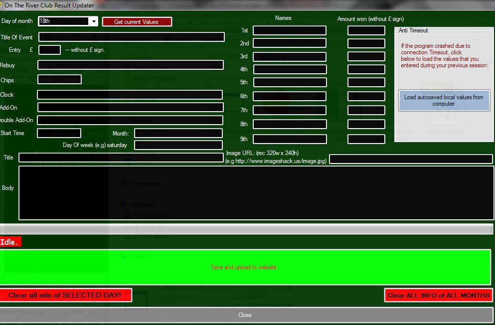 Along with the website itself, we designed a software updater for a popular blues band. It allows the band members to update the set list, and upcoming gig dates without having to edit the website page itself. This software works through xml files on the ftp server, rather than a SQL database. For an example of a program similar to this which works on a SQL server, please see our Poker Club Updater (above). |