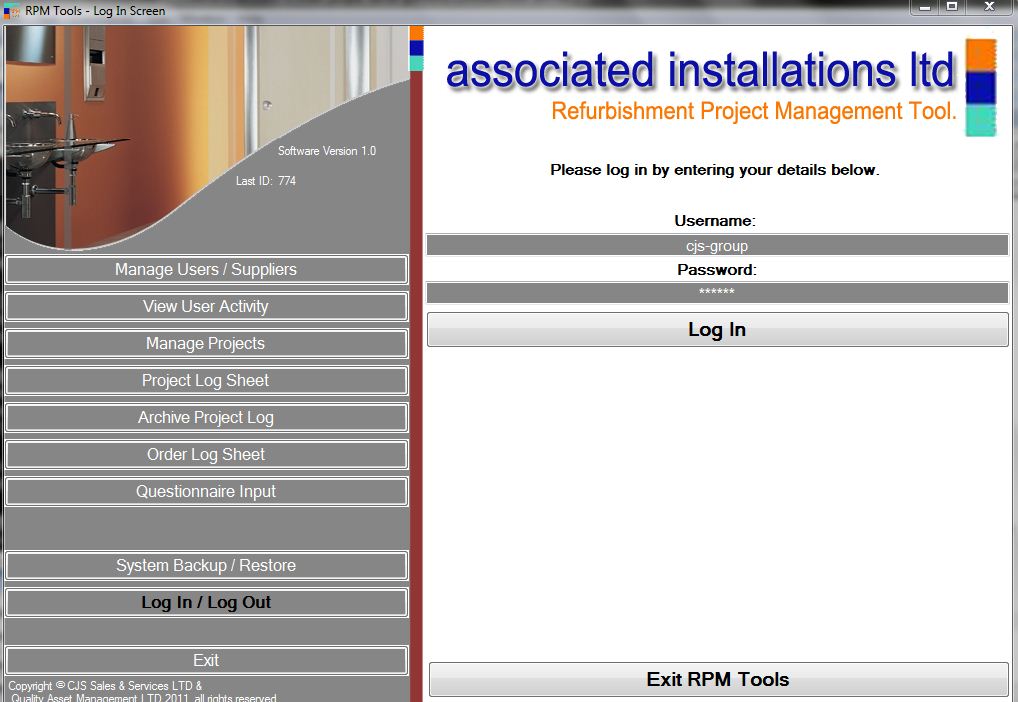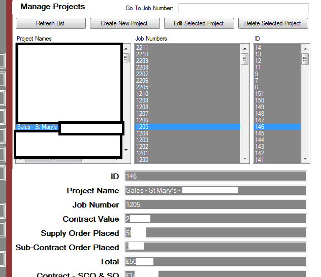 This software is a complete project management software solution, created for a refurbishment company wishing to upgrade their systems. The name RPM tools stands for Refurbishment Project Management Tools. The software is a complete solution for the company, allowing them to keep track of their day to day orders. It allows them to manage their projects by tracking the status of supplier orders and subcontractor orders for each project. The software runs off of Microsoft SQL Server, and is installed on all staff computers. This allows all members of staff to work on projects simultaneously and view the project list and status live. It includes the following features: Login Screen, accessed by User ID & Password. Providing levels of accessibility privileges this would mean that some users could change or update information whilst other users could only view and therefore not accidentally change data. Project Screen. The user would choose a Project to access through a drop down list or box which the project number could be typed into directly to call up project details [linked to accounting nominal codes]. Then use an Enter button to take the user to the Project Summary.