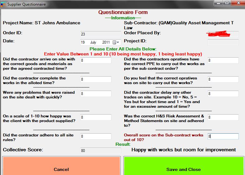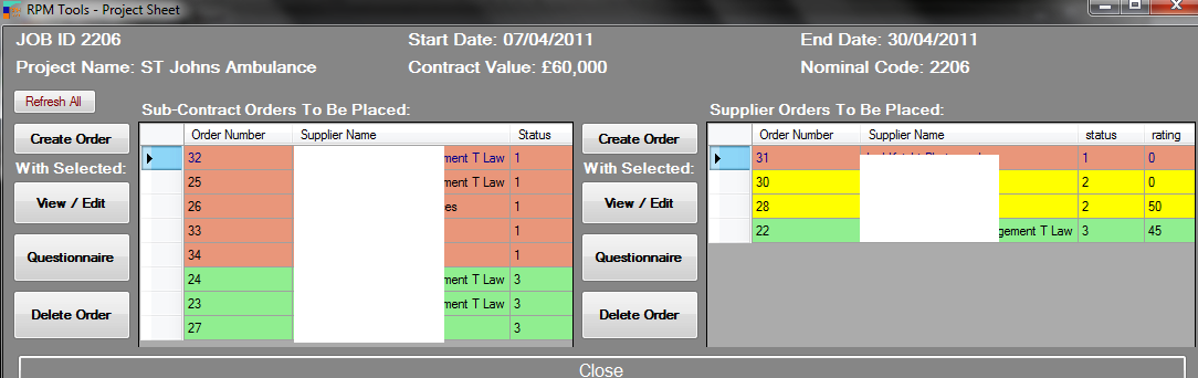 Project Summary. Each Sub-Contractor/Supplier would have an Order status (colour coded dependant on what stage the order is currently at